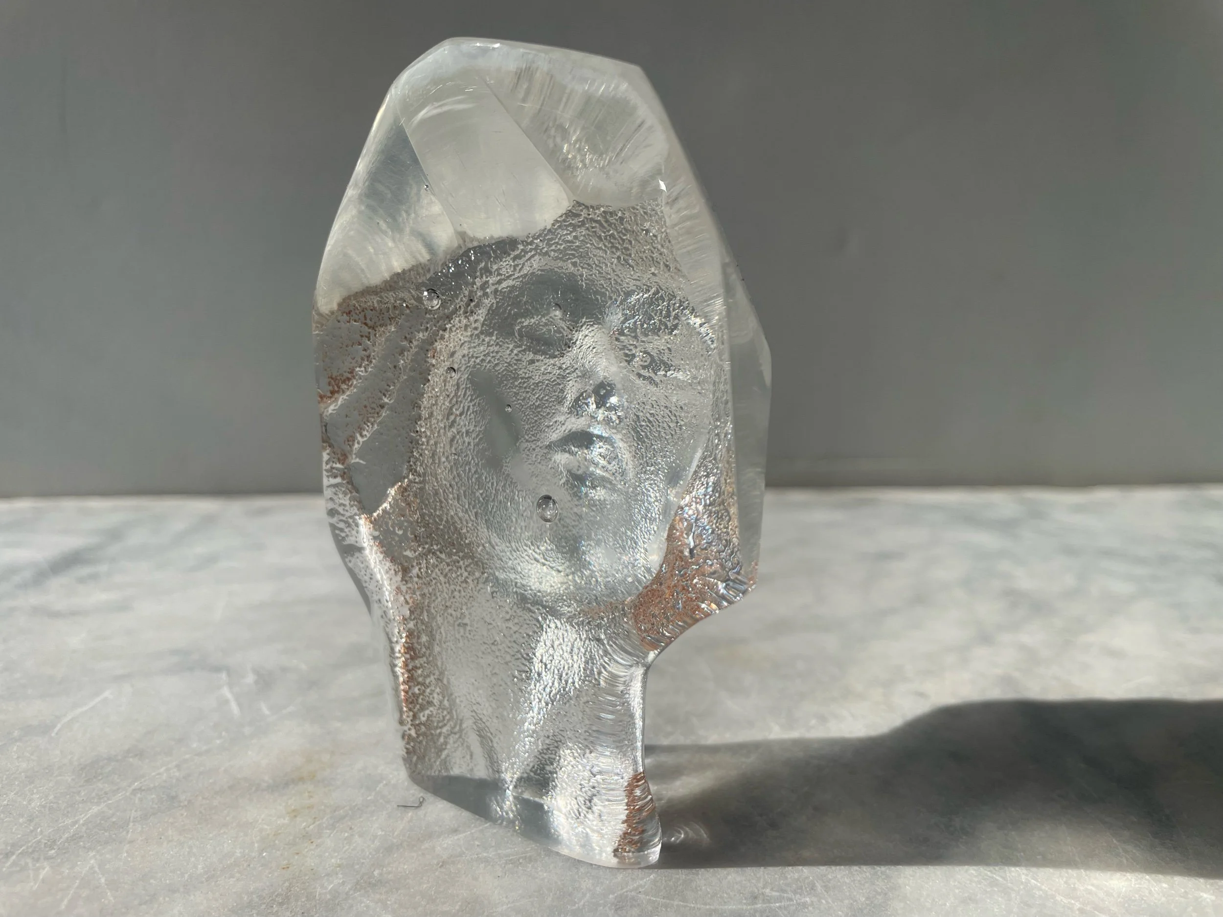 A beautiful gem of a sculpture, like a crystal with a face emerging from it. I love having pieces like this on a windowsill, or somewhere the sun shines on it occasionally.