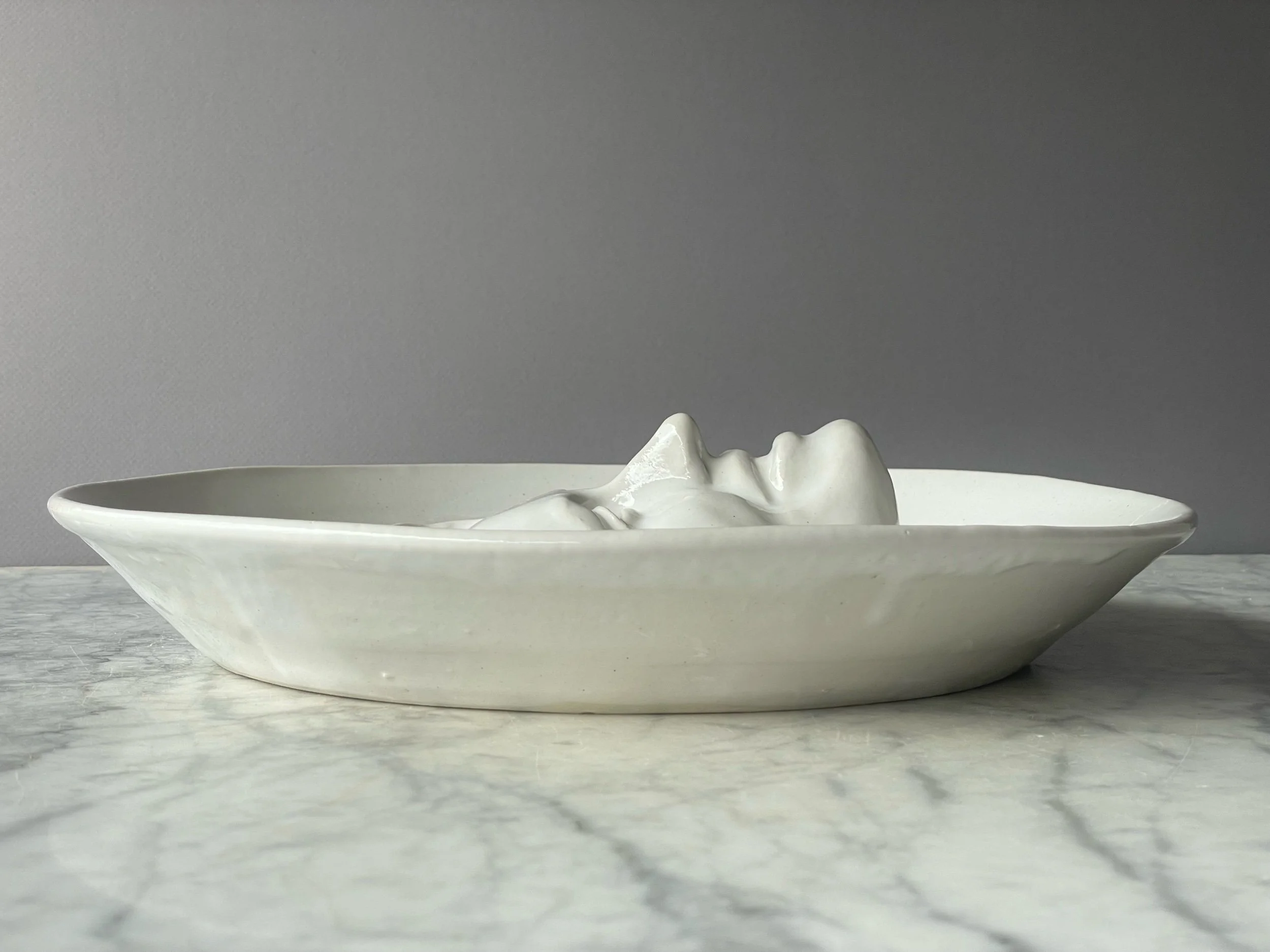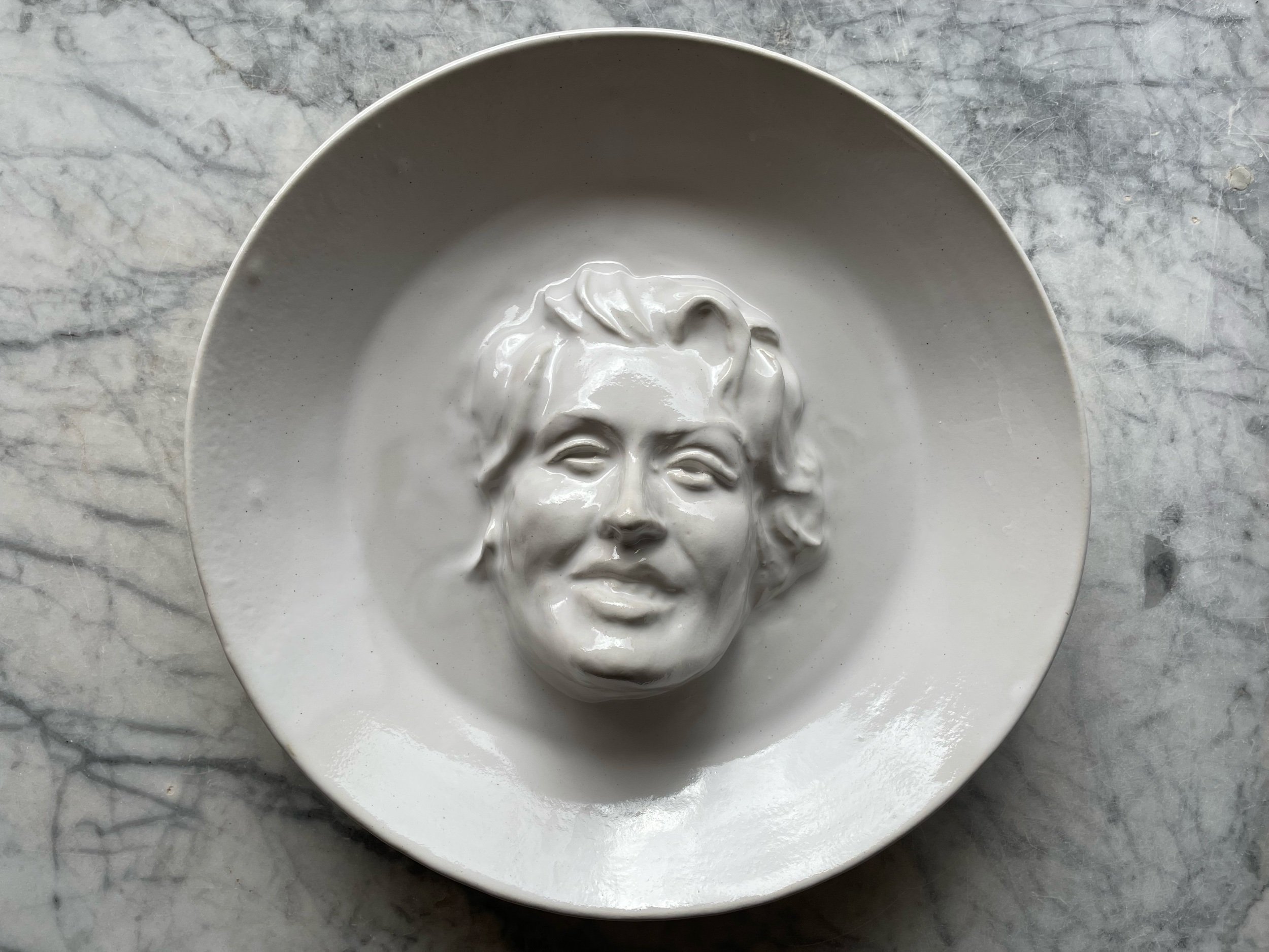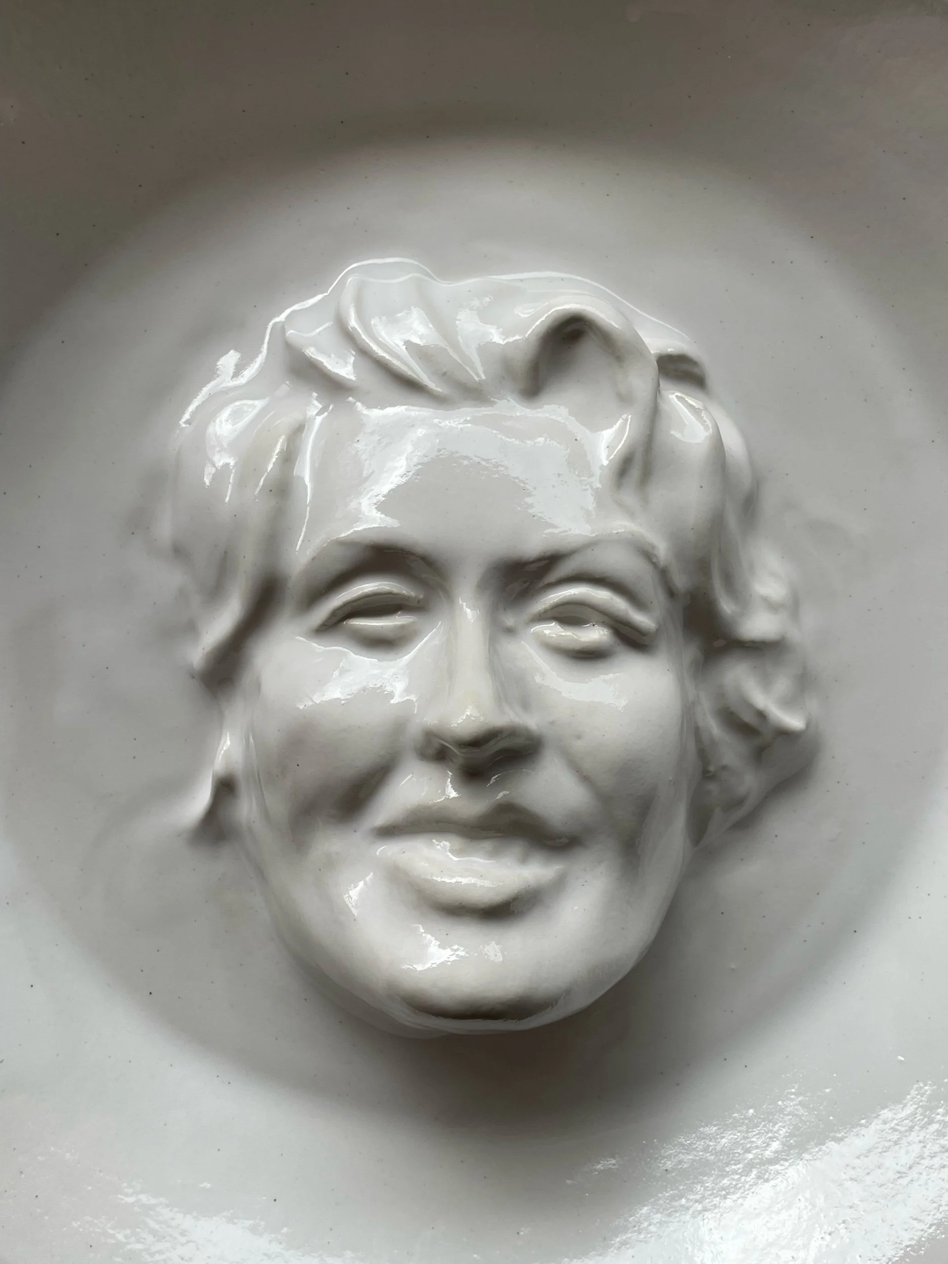 This large platter has a portrait of Dolly Parton emerging from the center. Wheel thrown and sculpted. And excellent piece for artfully playing with your food displays!